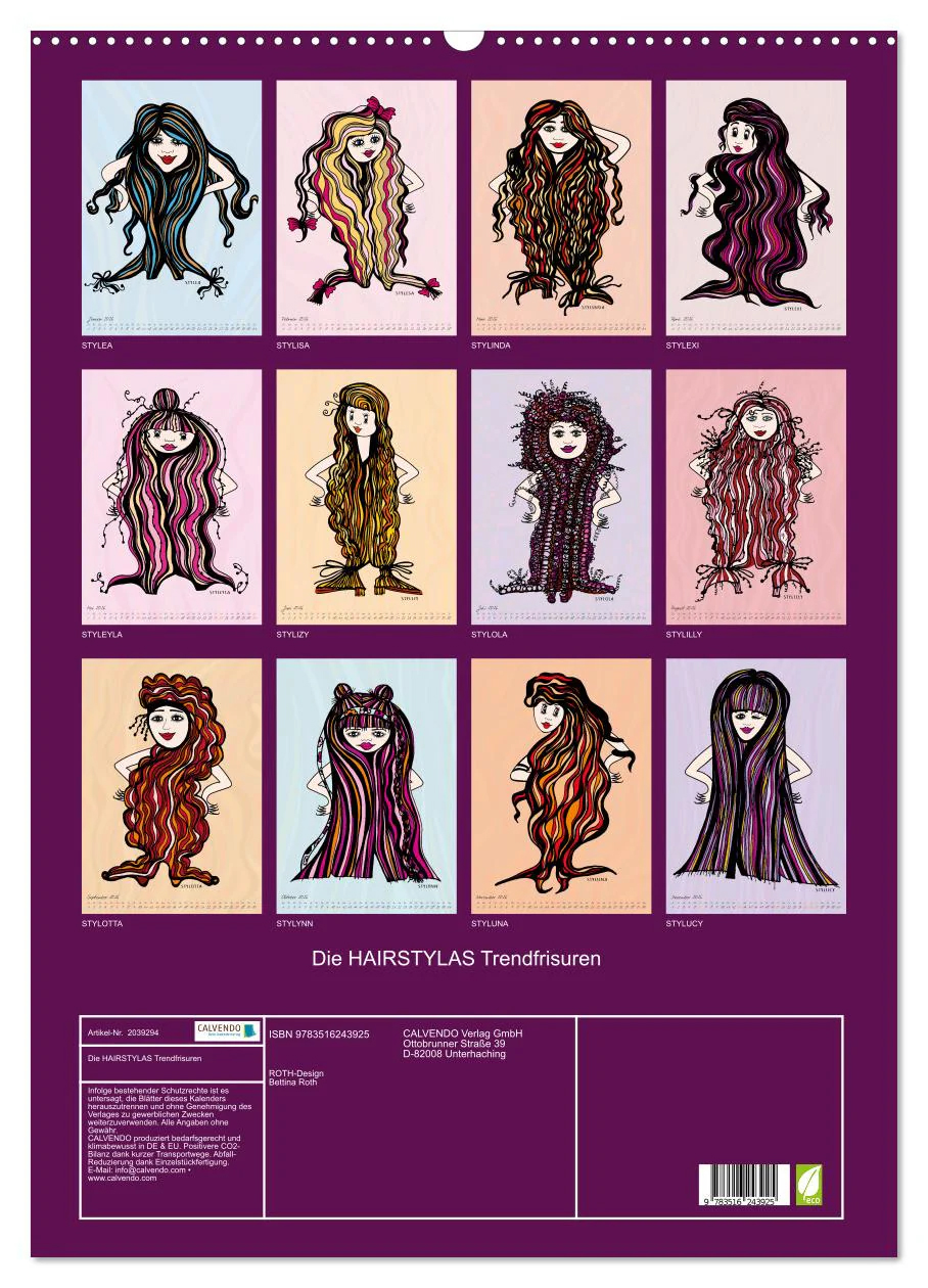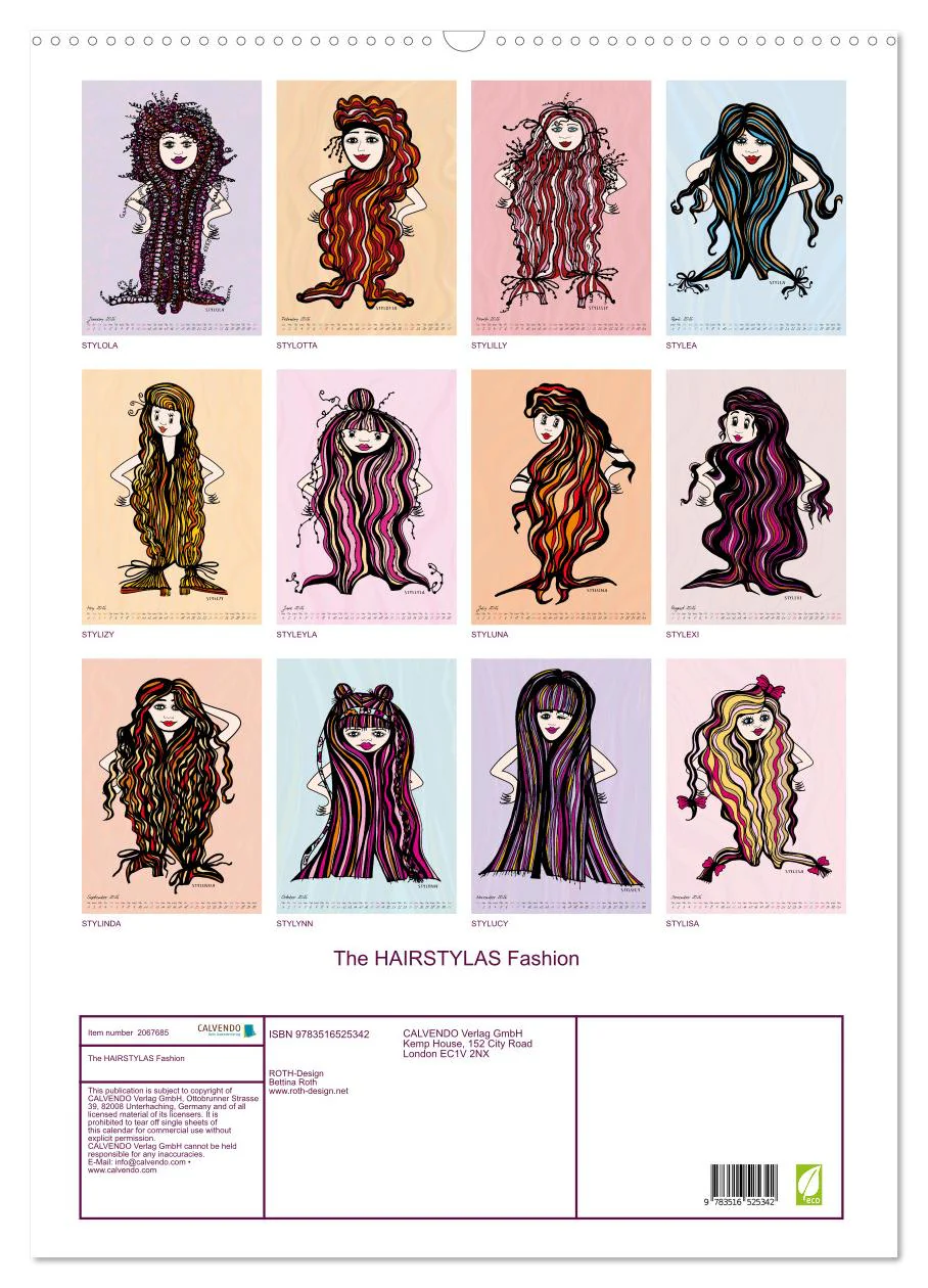 The HAIRSTYLAS Fashion Din A5/A4/A3/A2 (englisches Kalendarium – gleiche Motive)